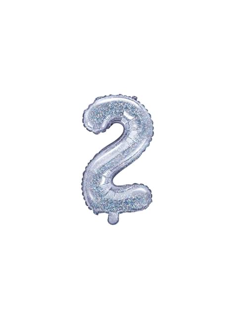 Folieballong "2" silverfärgade med purpurin (35 cm)