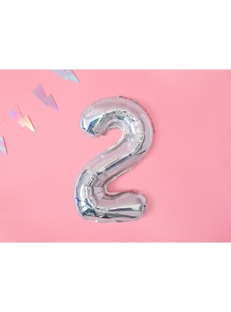 Produktpoäng: "Folieballong "2" silverfärgade med purpurin (35 cm)"