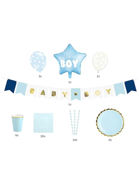 Inkluderar: 1 girlang, 6 pappersmuggar, 6 papperstallrikar, 10 papperssugrör, 20 servetter, 1 folieballong och 5 latexballonger