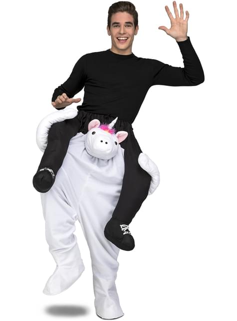 Maskeraddräkt enhörning vit ride on för vuxen