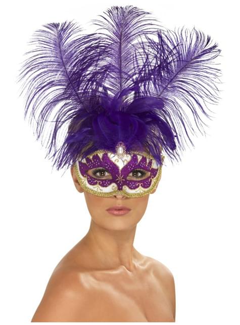 Venesiansk ansiktsmask guldfärgad och lila för henne