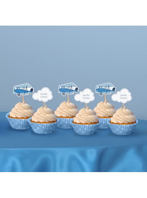 6 dekorationspinnar med flygplan och moln - Little Plane