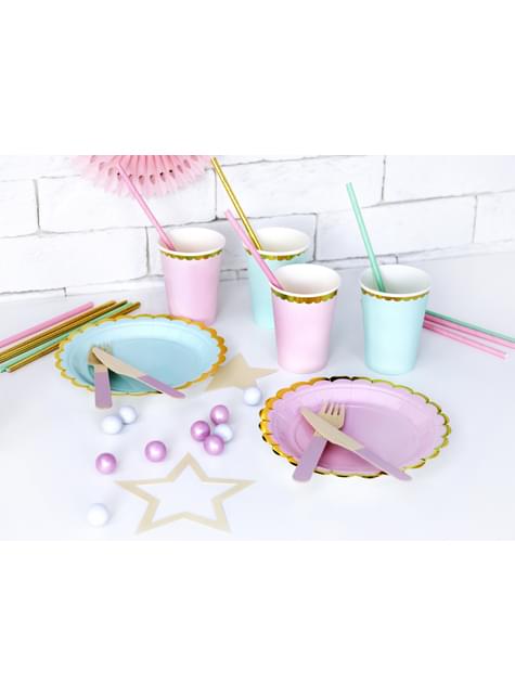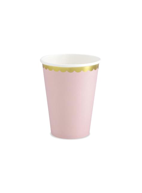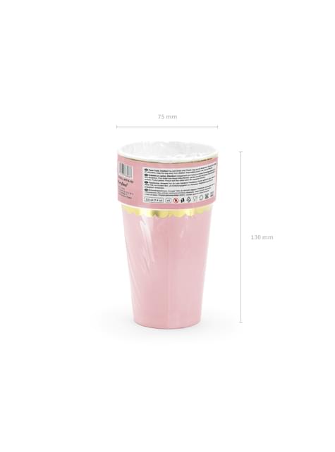Set med 6 pappersmuggar pastellrosa med guldfärgad kant - Yummy