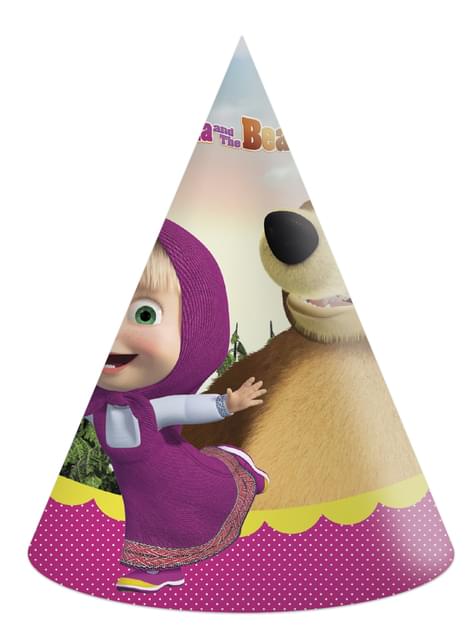 Set med 6 Partyhattar födelsedag Masha och Björnen