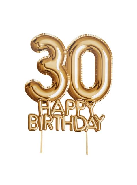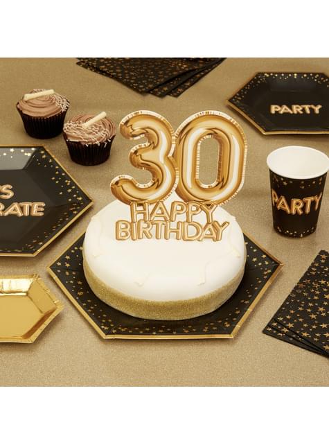 Tårtdekoration "30 Happy Birthday" guldfärgad - Glitz & Glamour Black & Gold